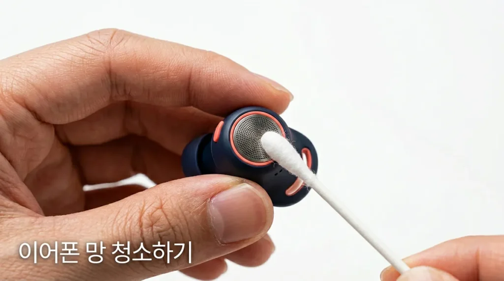 마른 면봉 또는 부드러운 브러시로 이어폰 망을 살살 닦아주세요.