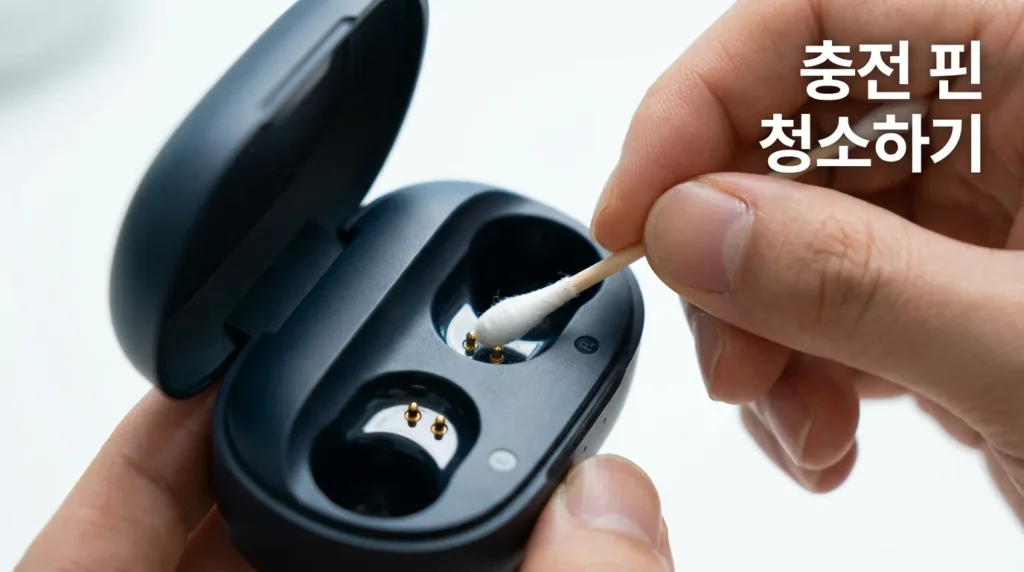 ⚠️ 주의: 이어폰 충전 핀에 물기가 남아 있으면 쇼트가 날 수 있어요. 청소 후 완전히 건조된 상태에서 케이스에 넣으세요.